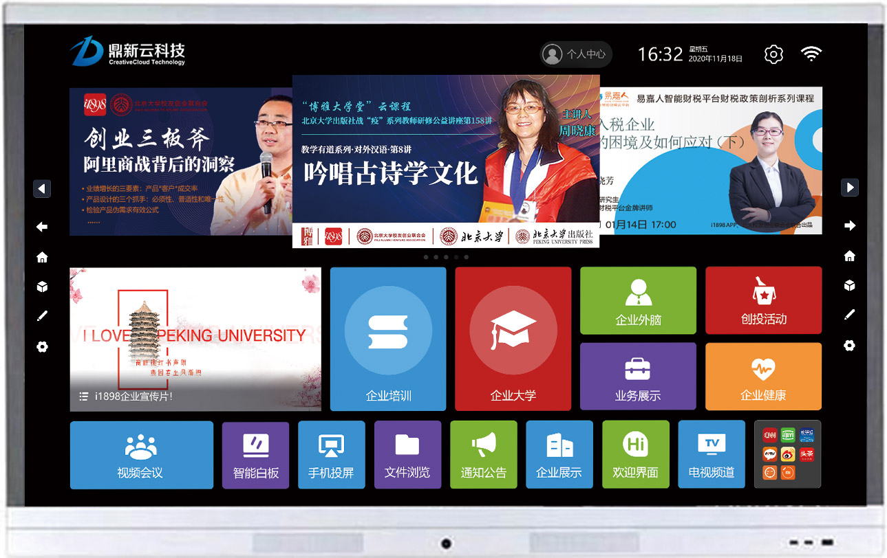 鼎新云智慧屏云賦能平臺與包括北京大學、中央黨校、社科院等在內(nèi)的20多所科研院所及國內(nèi)知名的培訓機構(gòu)建立了內(nèi)容資源及專家學者合作機制,可面向企業(yè)、政府、院校等領域提供繼續(xù)教育、職業(yè)培訓、智慧黨建等方面的課程內(nèi)容服務和專家直播講座、專家在線知識服務等。